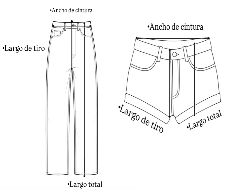 Largo:desde un punto medio entre la base del cuello y hombro hasta el final de la prenda.