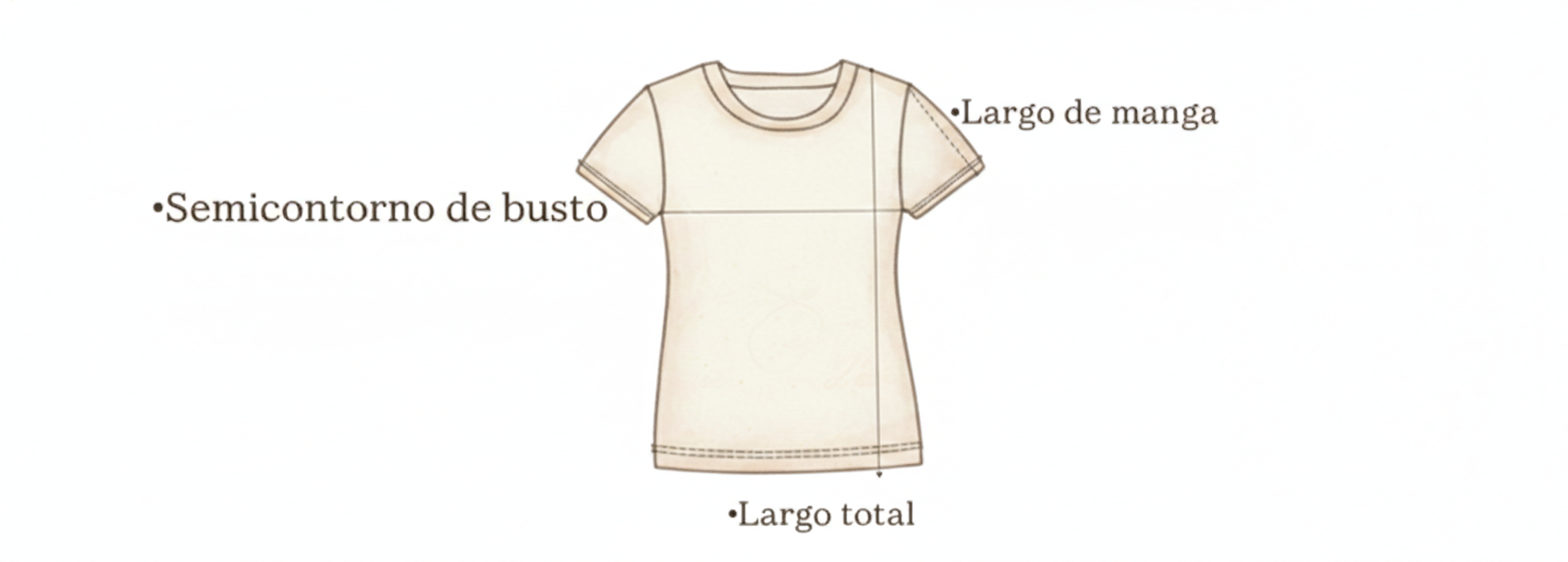 Largo:desde un punto medio entre la base del cuello y hombro hasta el final de la prenda.