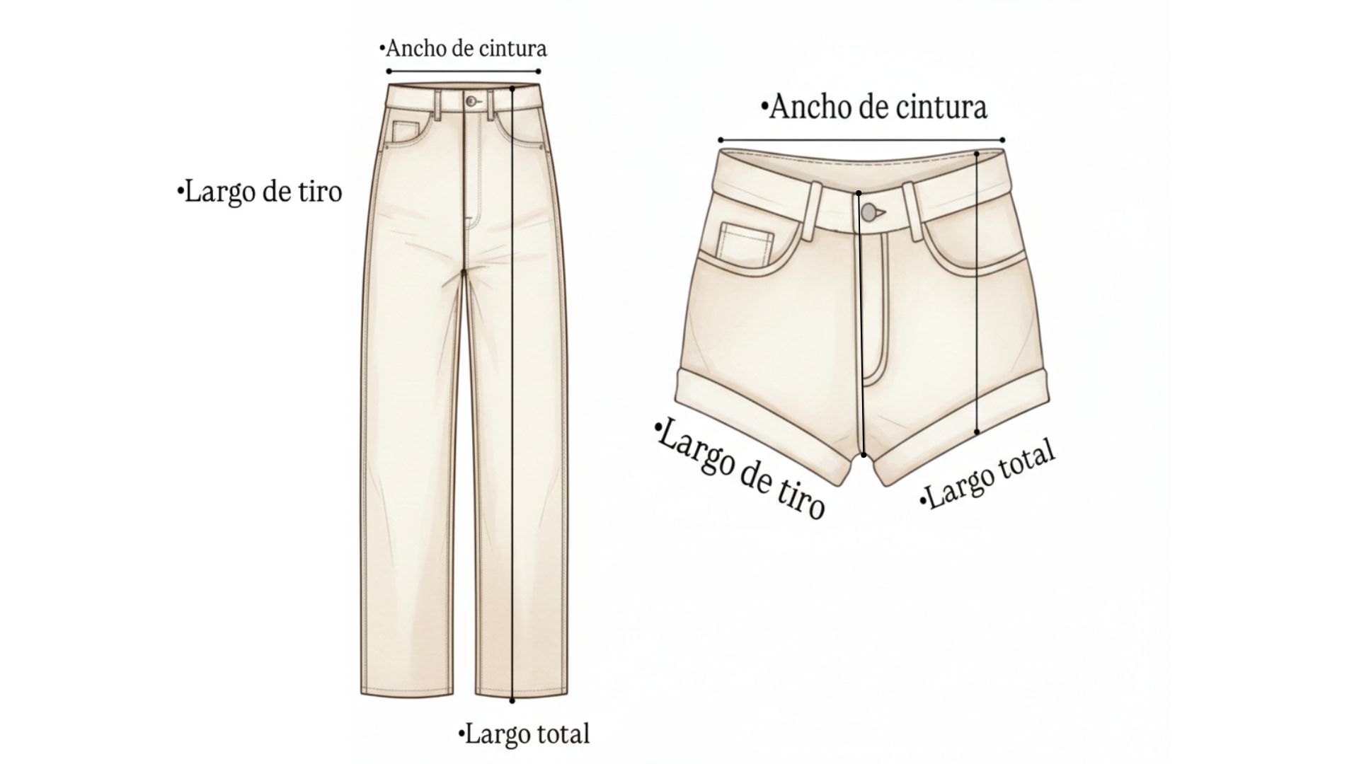 Largo:desde un punto medio entre la base del cuello y hombro hasta el final de la prenda.
